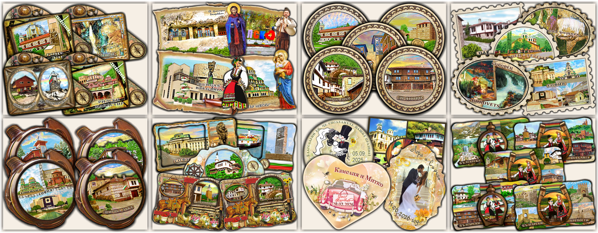 ИЗРАБОТВАМЕ СУВЕНИРИ, МАГНИТИ и ПОДАРЪЦИ ЗА МАГАЗИНИ, МУЗЕИ, ТИЦ-ове, МАНАСТИРИ, ЦЪРКВИ, КРЕПОСТИ, АТРАКЦИОНИ и ЗАБЕЛЕЖИТЕЛНОСТИ, УЧИЛИЩА, ЧИТАЛИЩА, ФОЛКЛОРНИ и СЕМЕЙНИ СЪБИТИЯ, ХОТЕЛИ и други.